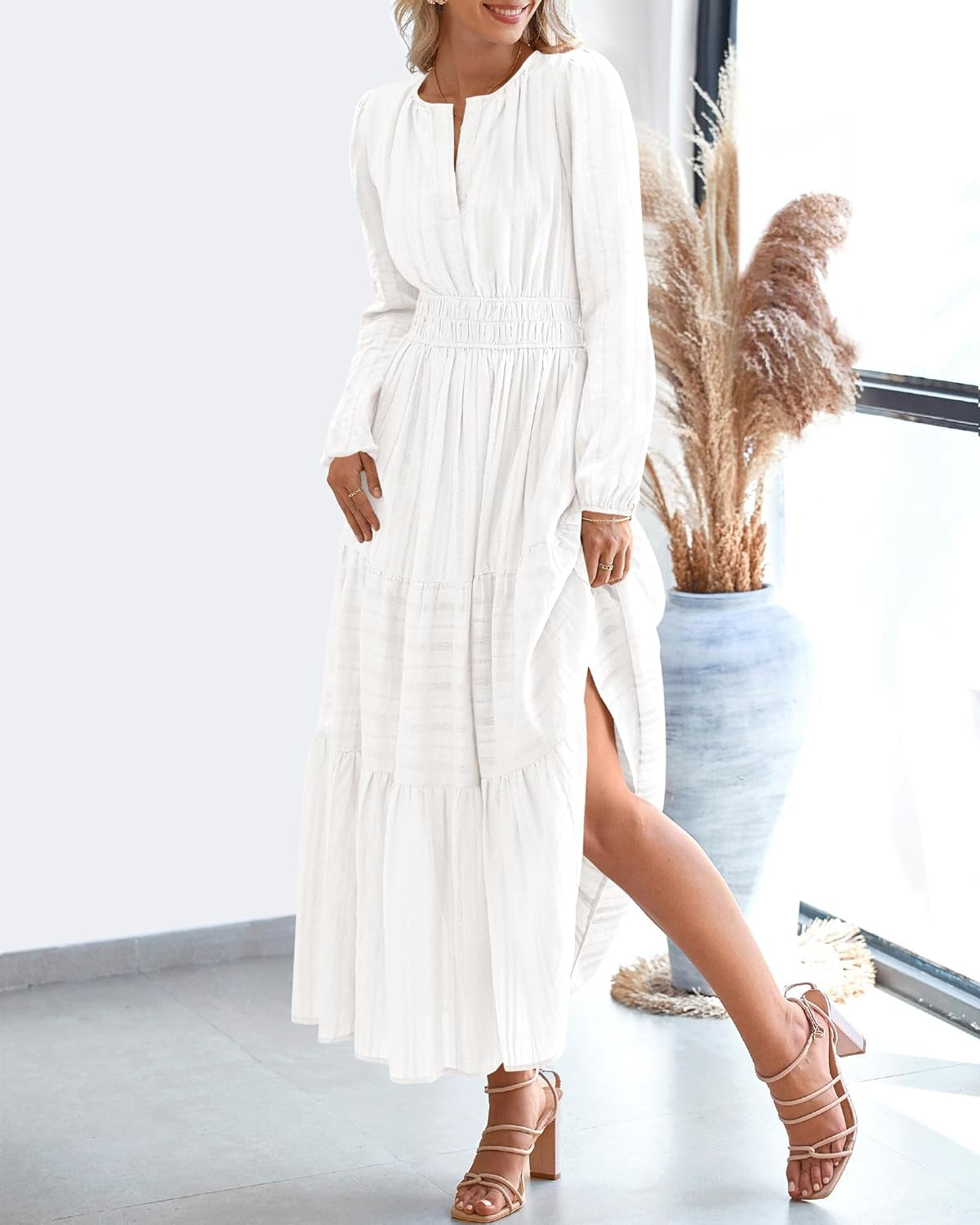 BTFBM Casual V Neck Long Sleeve Homecoming Long Holiday Dresses