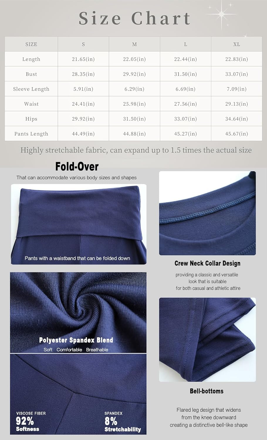 Crafted for the modern woman, YETOWA lounge set combines a figure-flattering short sleeve top with stylish low-rise flare leggings. The perfect blend of elegance and casual comfort, tailored to enhance your silhouette while providing maximum comfort.