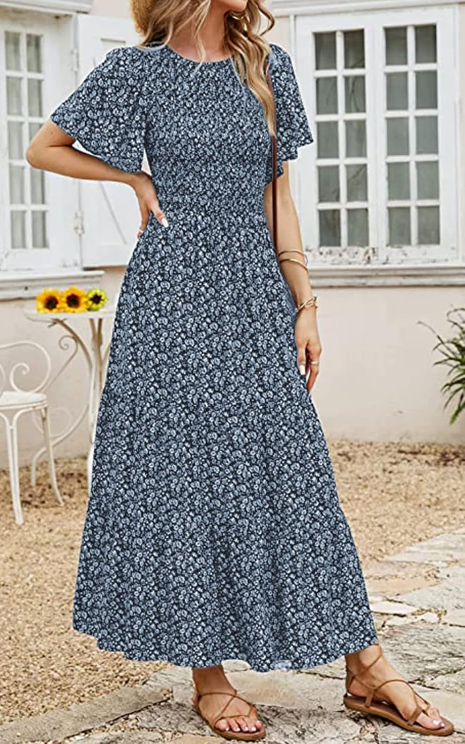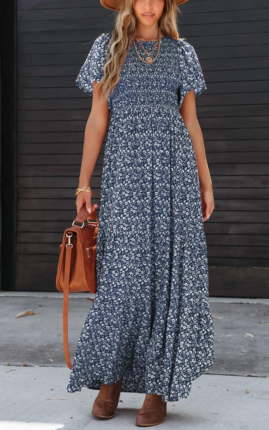 Crewneck casual dresses for women daily wear/Smocked top maternity dress/High waisted Tiered party dresses for women/Flounce short sleeve holiday dresses for women/Lightweight flowy beach dresses for women summer/Long homecoming dresses/Wedding guest dresses for women 2025/Floral Boho summer dress