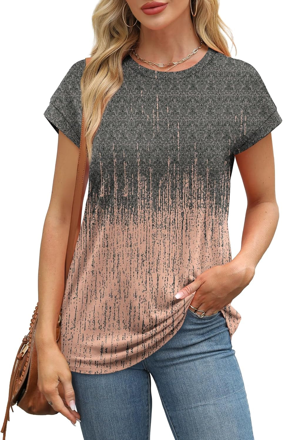 Womens Summer Tops Short Sleeve Shirts Crew Neck Cute Trendy Tunic Blouses (S-3XL)