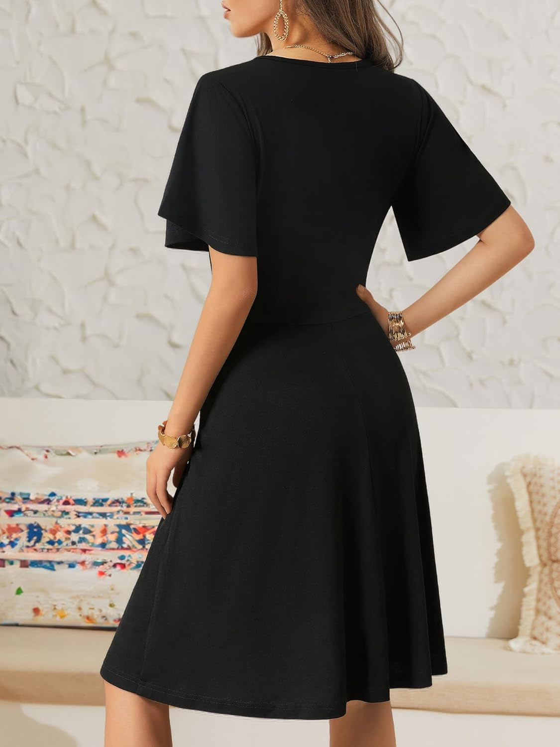 Womens Sundress Summer Floral Short Sleeve Wrap V Neck A-Line Midi Dress