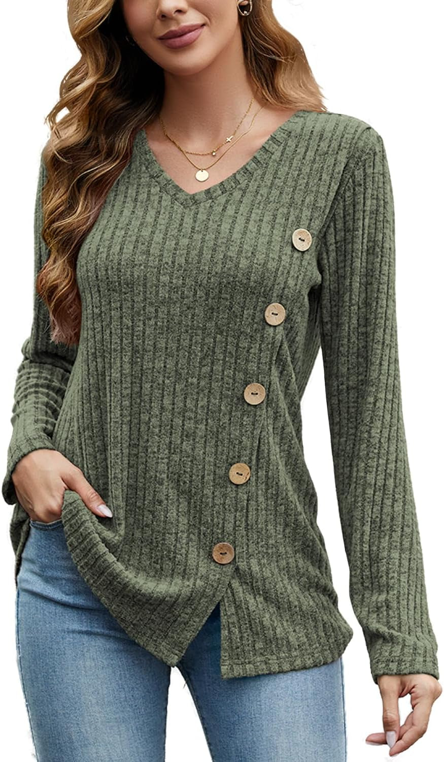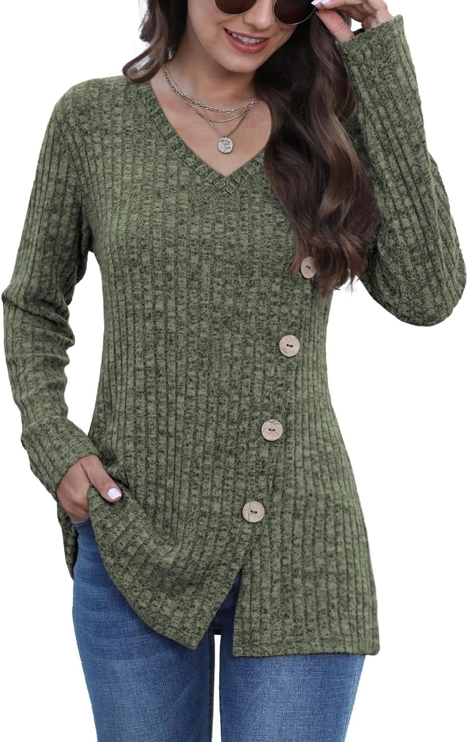 Womens Sweaters Long Sleeve Shirts V Neck Sweatshirt Loose Casual Tunic Tops