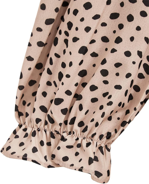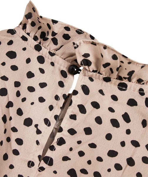 Women Polka Dot Long Sleeve Blouse Shirts Work Mock Neck Ruffle Top