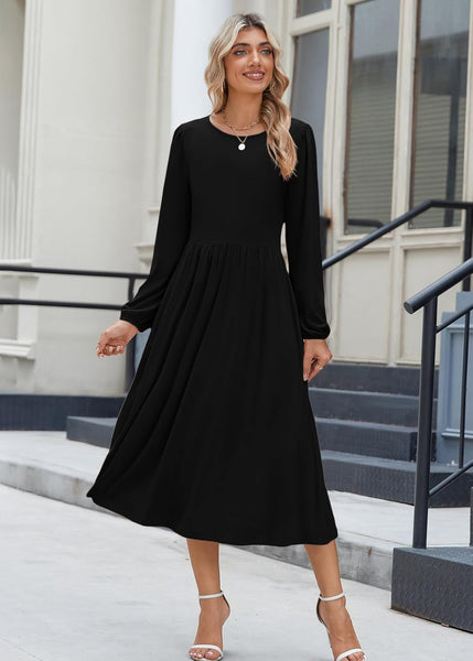 Long Sleeve Dresses for Women 2025 Fall Winter Casual Flowy A-Line Boho Midi Party Long Dress with Pockets