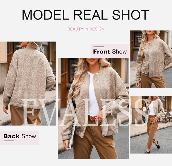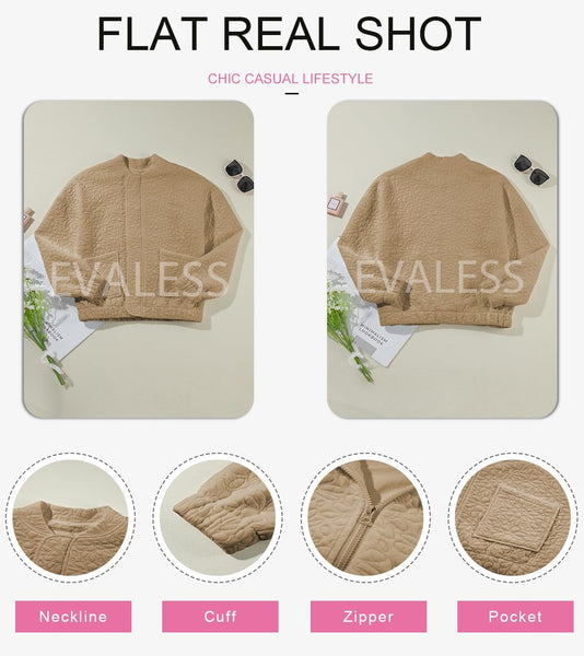 EVALESS Casual Jackets for Women Cute Jacquard Coat With Pockets Fashion 2025