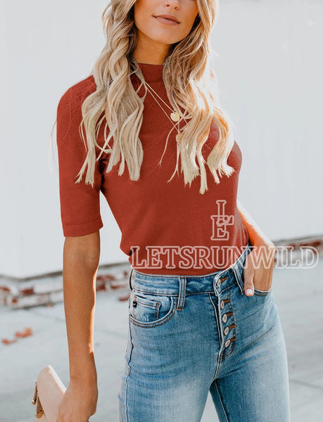 2025 Short Sleeve Mock Neck Stretchy Cotton Shirt Casual T Shirt Blouse Tops