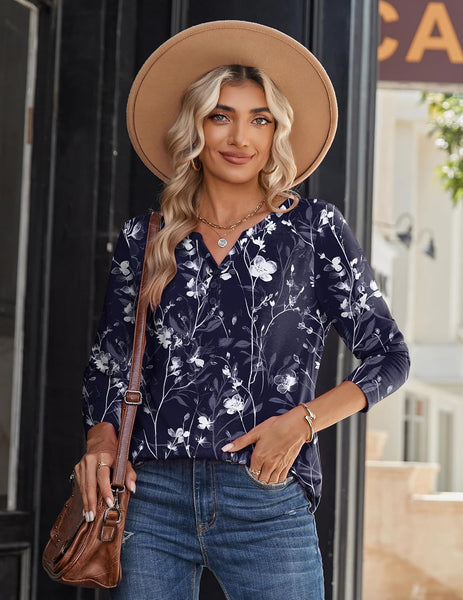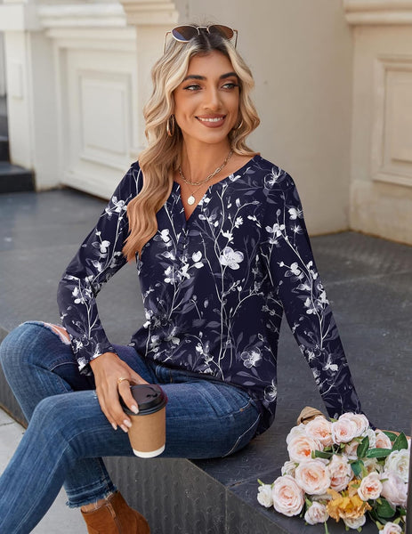 Long Sleeve Shirts for Women Casual V Neck Fall Tops Dressy Summer Work Blouses Clothes
