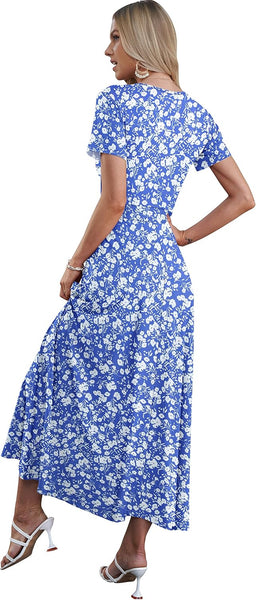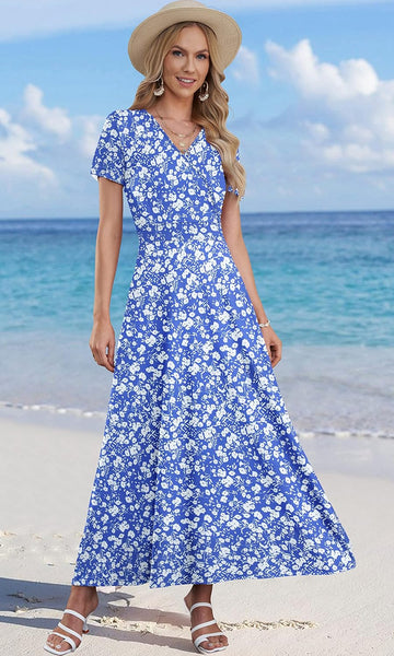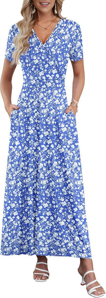 Maxi Dresses for Women Ankle Length Floral Print Beach Long Flowy Dress with Pockets