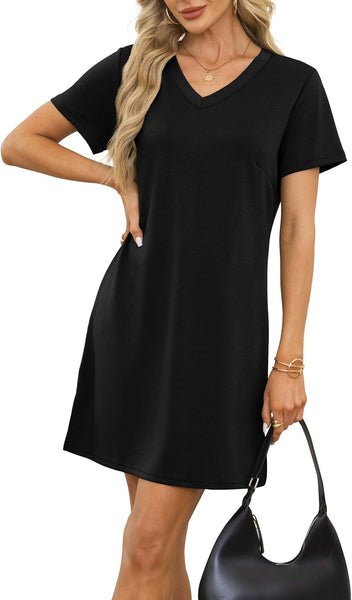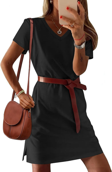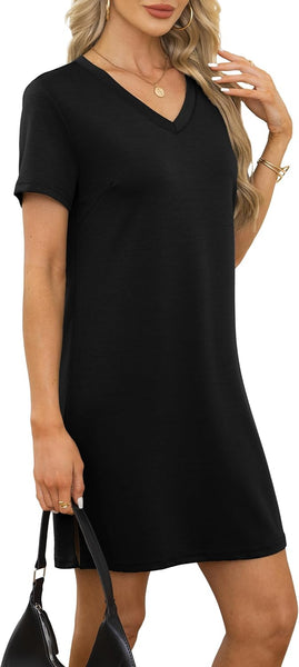 Summer Casual Dresses for Women 2025 Vacation Dress V-Neck Short Sleeve Split Hem Beach Sundress
