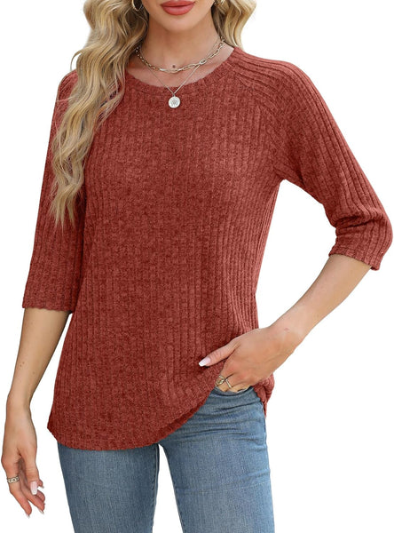Comfy loose 3/4 sleeve tops, fashion simple, dressy and cozy.