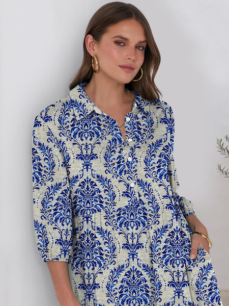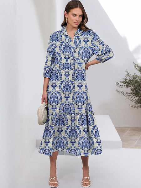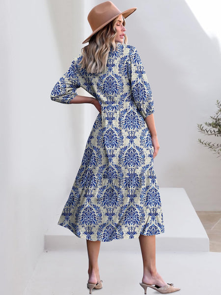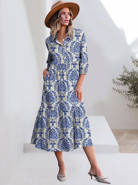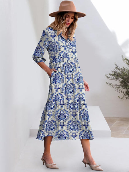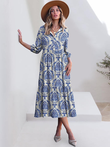 ANRABESS Women Floral Print Polo V Neck Boho Casual Midi Dress