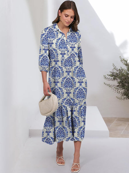 ANRABESS Spring Floral Print Flowy Swing Long Beach Travel Dresses