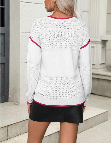 Womens 2025 Fall Sweaters Casual Long Sleeve Ribbed Knit Pullover V Neck Lightweight Crochet Pullover Sweater Top