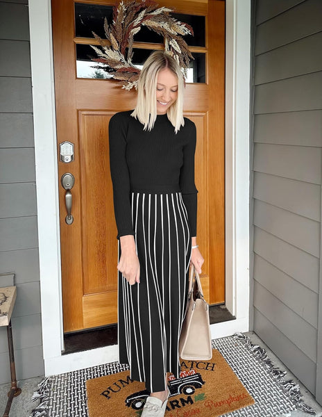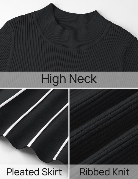 Womens 2025 Fall Turtleneck Long Sleeve Sweater Dress Tie Waist Casual Loose Ribbed Knit a Line Midi Dresses