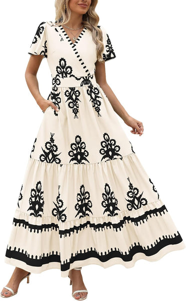 PRETTYGARDEN Fashion Boho Dresses for Women 2025 A line Long Flowy Beach Vacation Dress