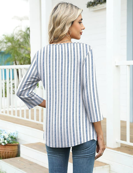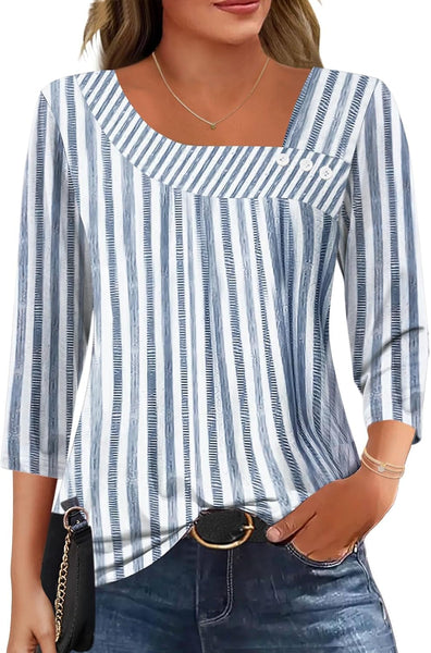 Womens 3/4 Length Sleeve T Shirts Asymmetrical Neck Tops Business Blouses for Women Fashion 2025