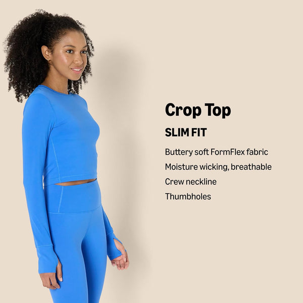 Women'S Active Formflex Buttery Soft Long Sleeve Slim Fit Crop Layering Workout Top
