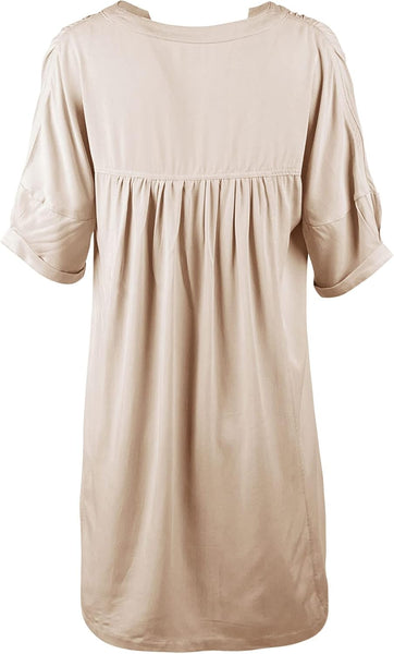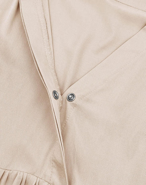 We have designed a hidden button. You can choose between a normal V-neck or a low v necked.