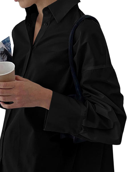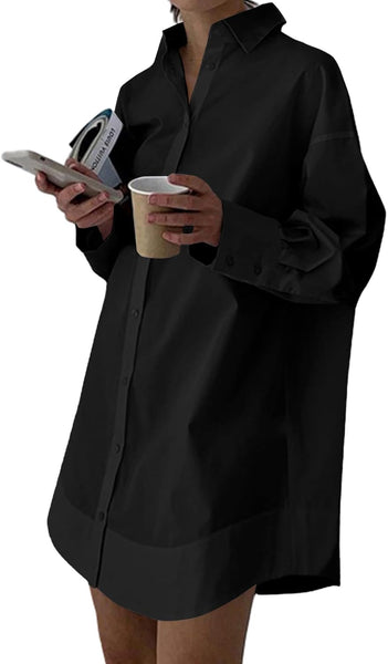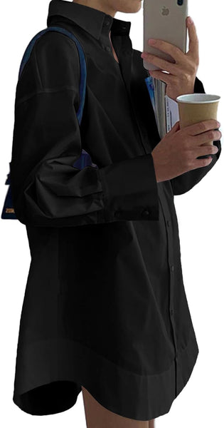Women'S Casual Shirt Dress Collar V Neck Button down Loose Long Sleeve Mini Dresses