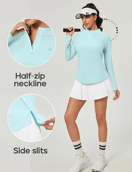 Womens Long Sleeve Workout Tops Golf Shirts for Woman UPF 50+ UV Sun Protection SPF Shirts Quarter Zip Pullover