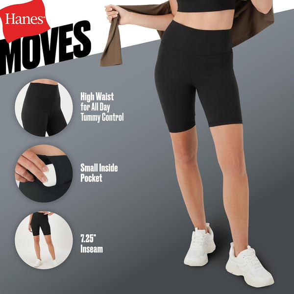 In every athletic wardrobe, a fantastic pair of workout shorts is a must-have. These bike shorts from the Hanes Moves™ collection check all the boxes. Crafted from peached interlock fabric, these women's bike shorts offer...