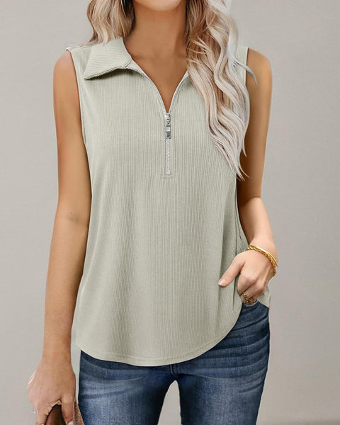 Vivilli Ribbed Knit Tank ZIP SLEEVELESS TOP ARE ON TREND!