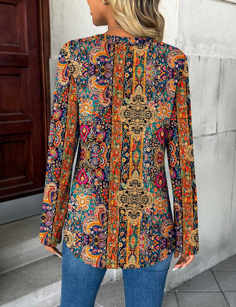 Womens Cute Long Sleeve Tops V Neck Plaid Shirts