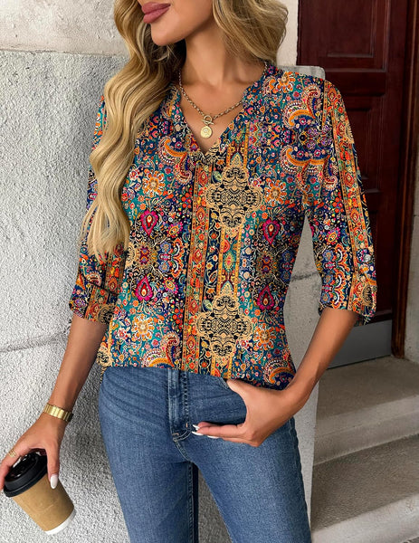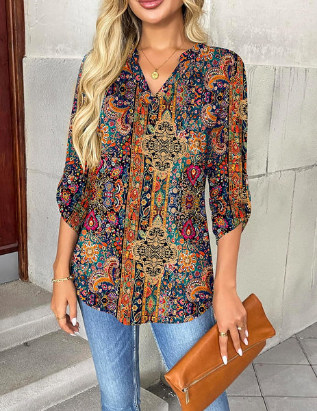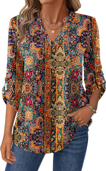 Excellent rolled sleeve design with a button to switch between long or 3/4 sleeve nice to wear with blazer and jackets. The womens tops are well made for summer, fall and winter