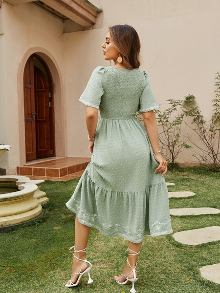 Glamaker Women's Short Sleeve Smocked Midi Dress