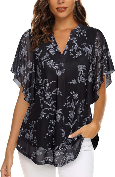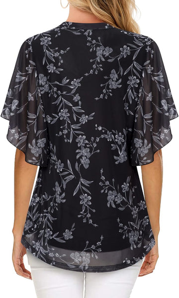 Feature | Butterfly Sleeve /V Neck/Flattering Floral Printed/Double Layers/A-Line/ High Low Hem/Wrinkle Free/Loose Fit/Trendy and Elegant. |