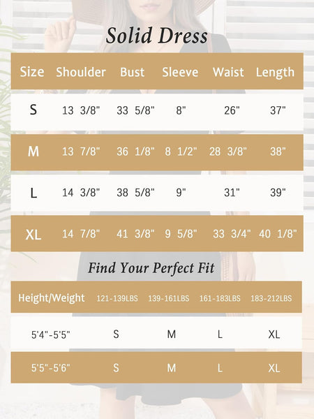 Solid Dress: 60% Polyester, 35% Rayon, 5% Spandex – soft, and effortlessly flattering.