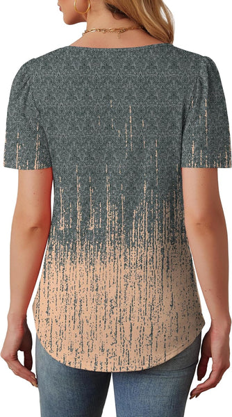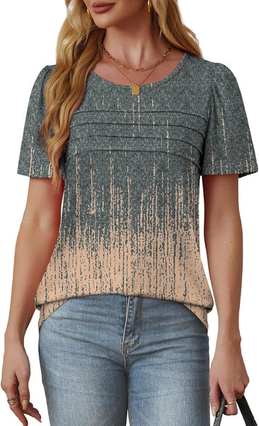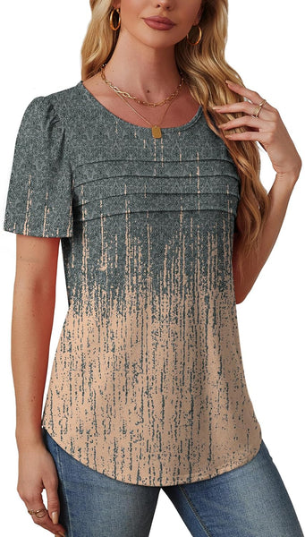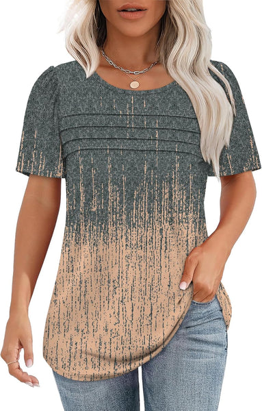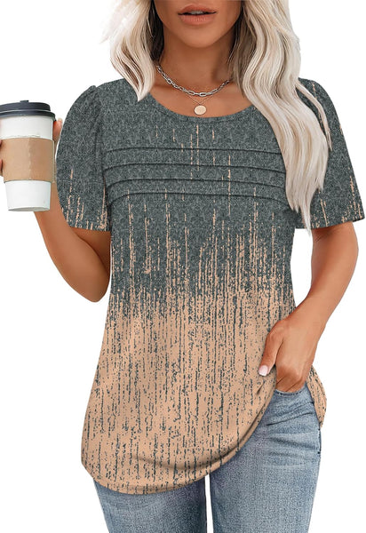 Womens T Shirts Short Sleeve Tops Dressy Casual Blouses Spring Summer Outfits Flowy Pleated Front Scooped Neck