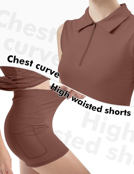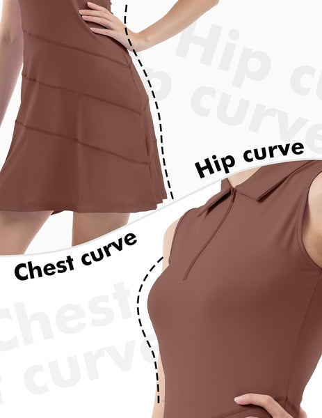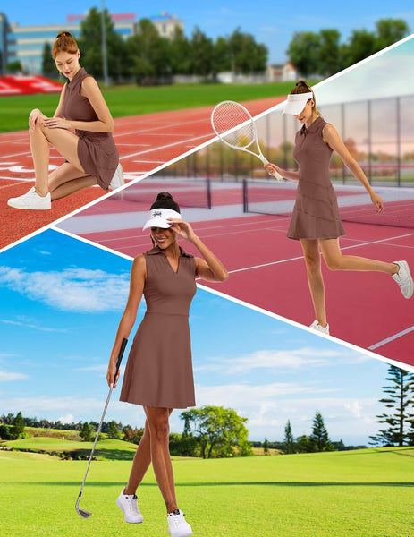 Women'S Tennis Golf Dresses Zipper V-Neck Sport Activewear with Shorts and Pocket Workout Athletic